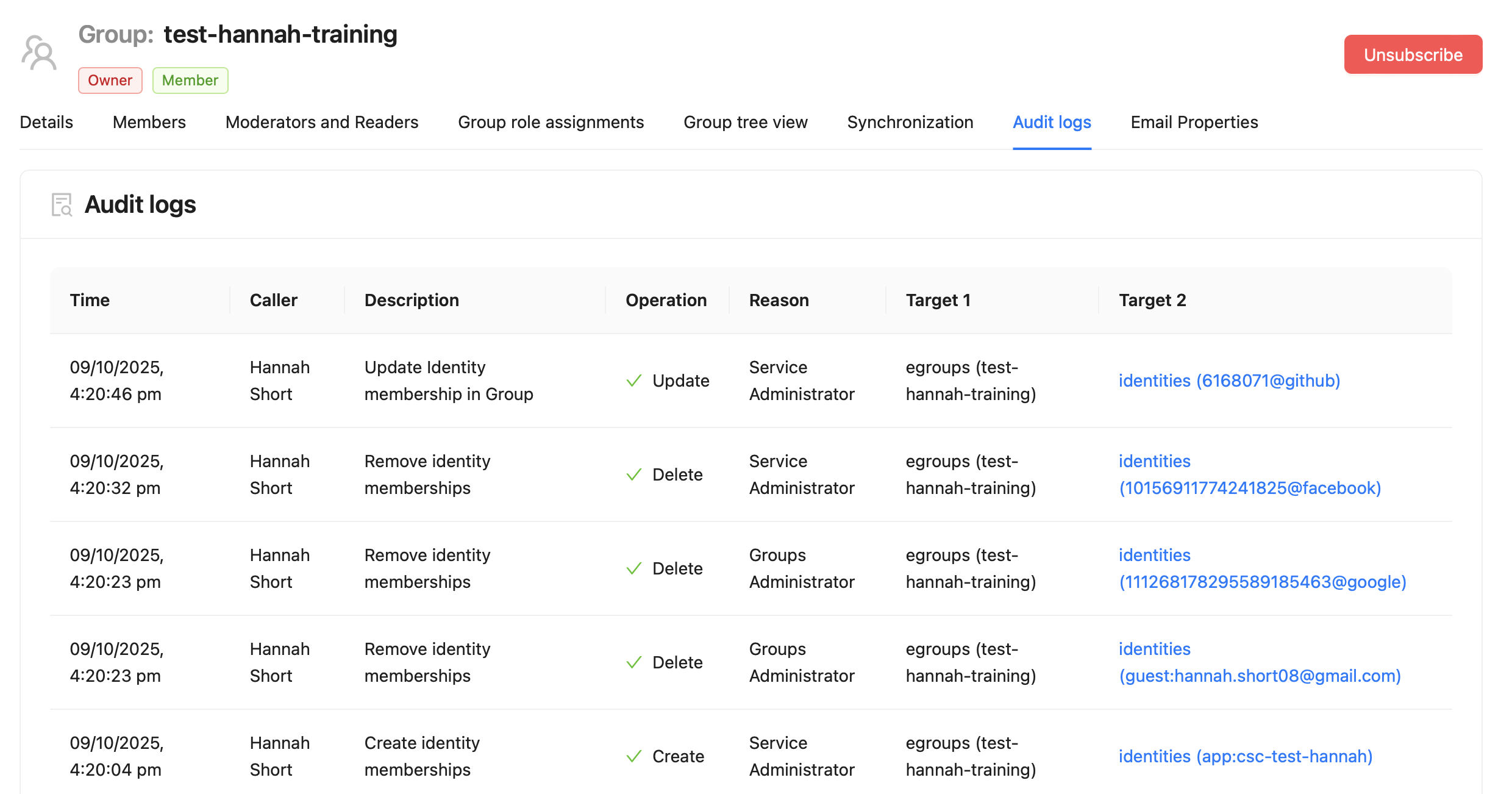 The Audit tab is available to owners and administrators of groups (as well as Service Supporters).